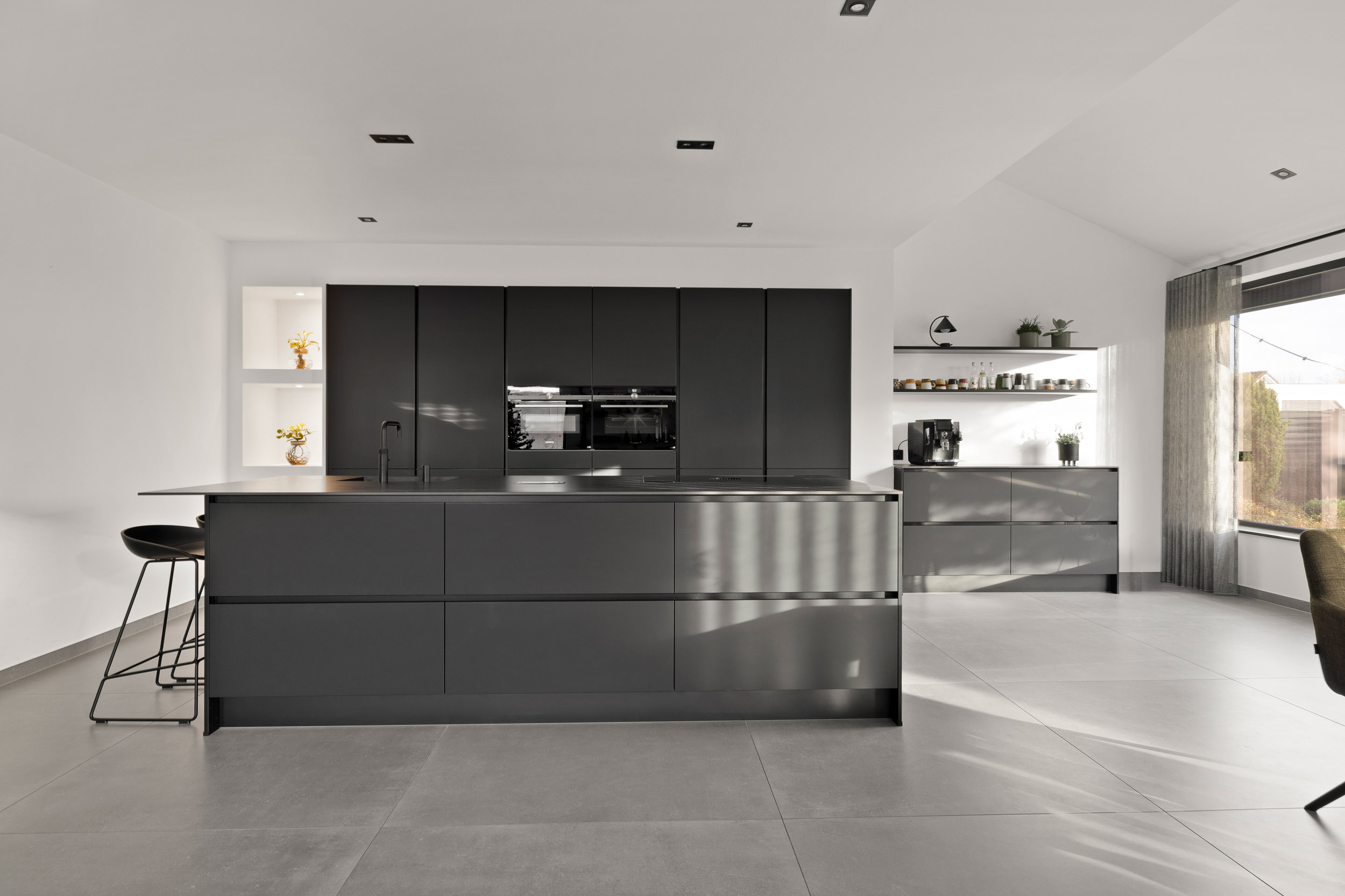 - Mat zwarte of donkergrijze accenten voegen moderne sophistication toe