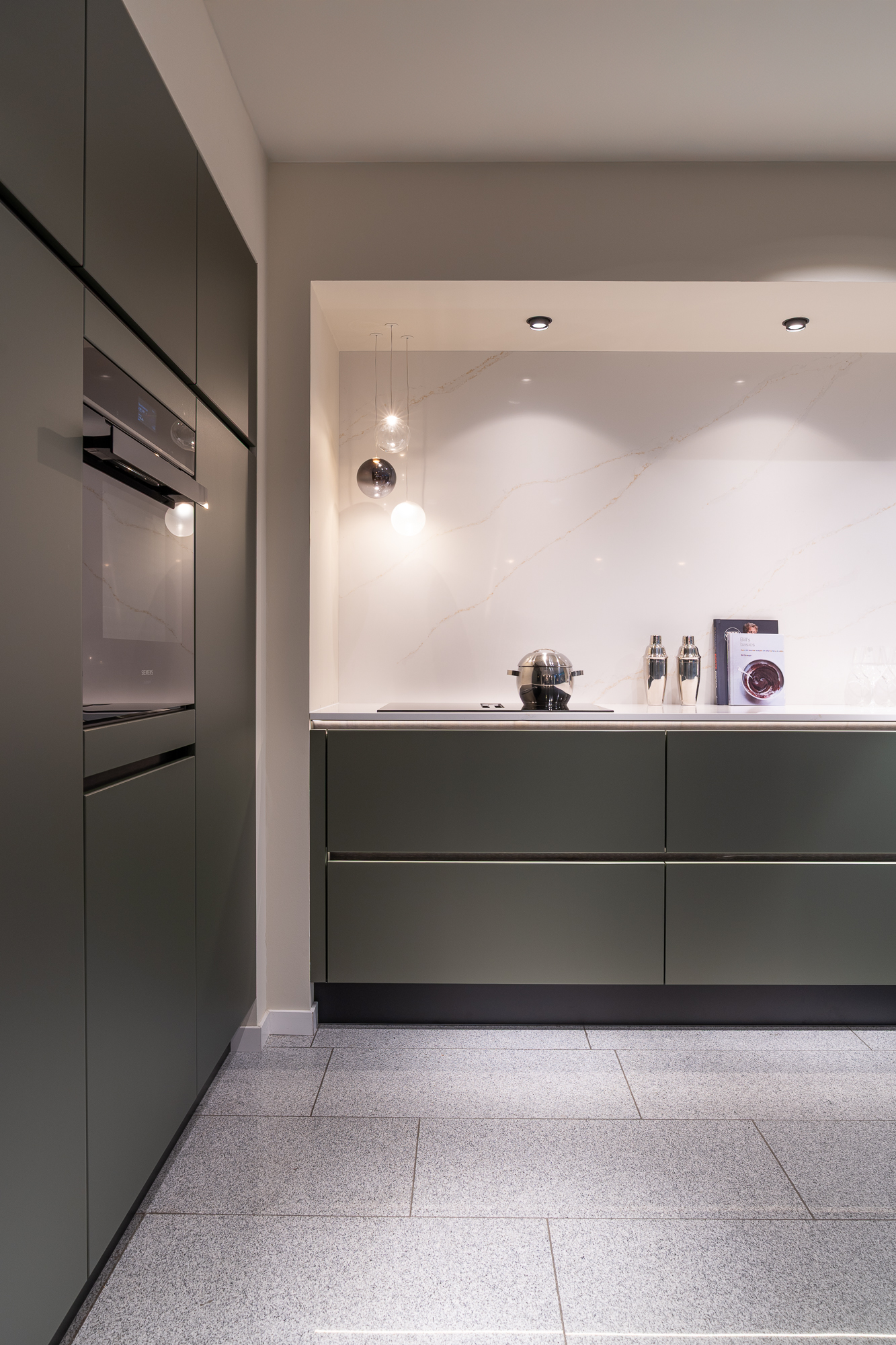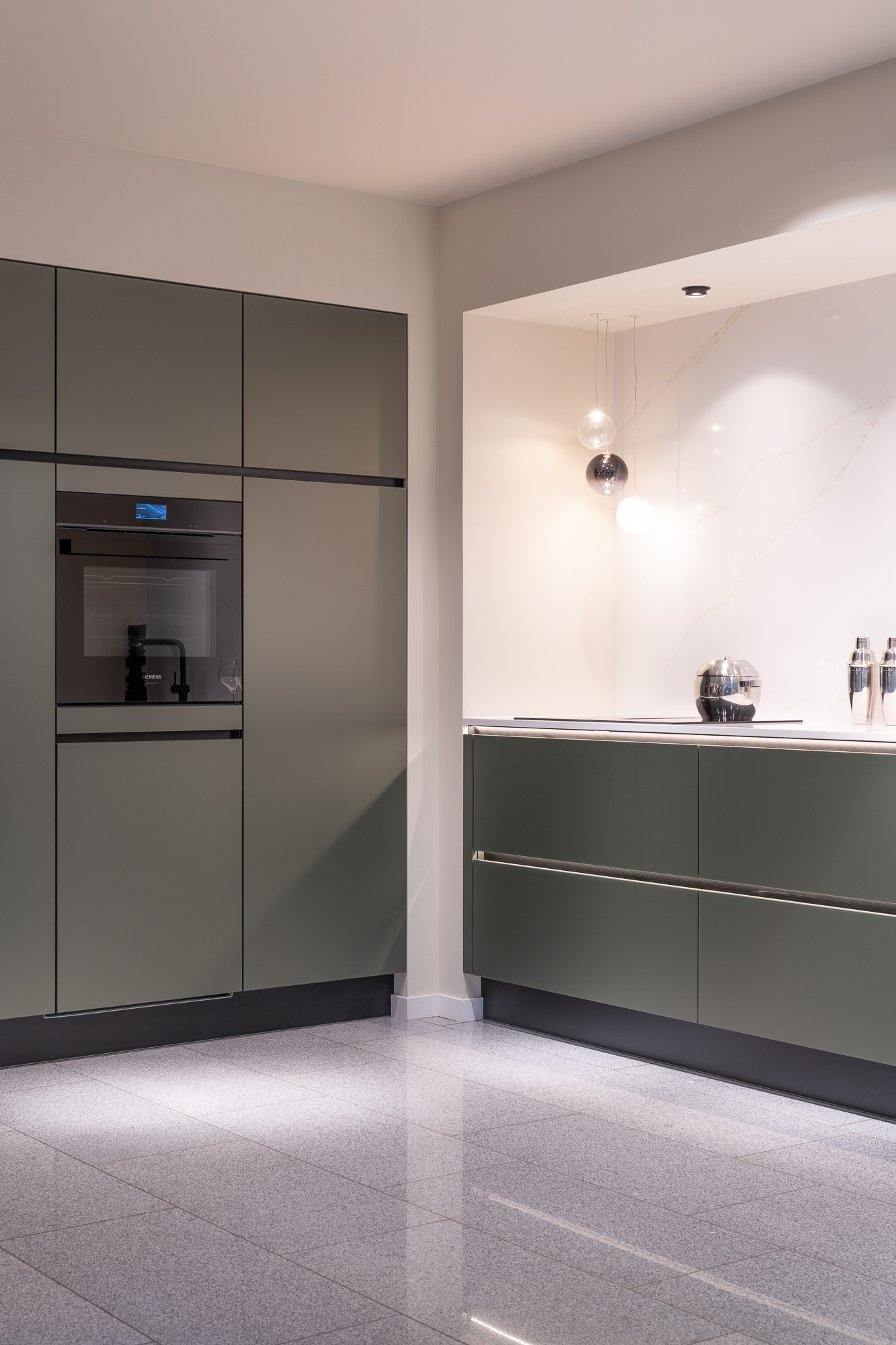 - Verborgen scharnieren en geïntegreerde handgrepen zorgen voor een naadloze look